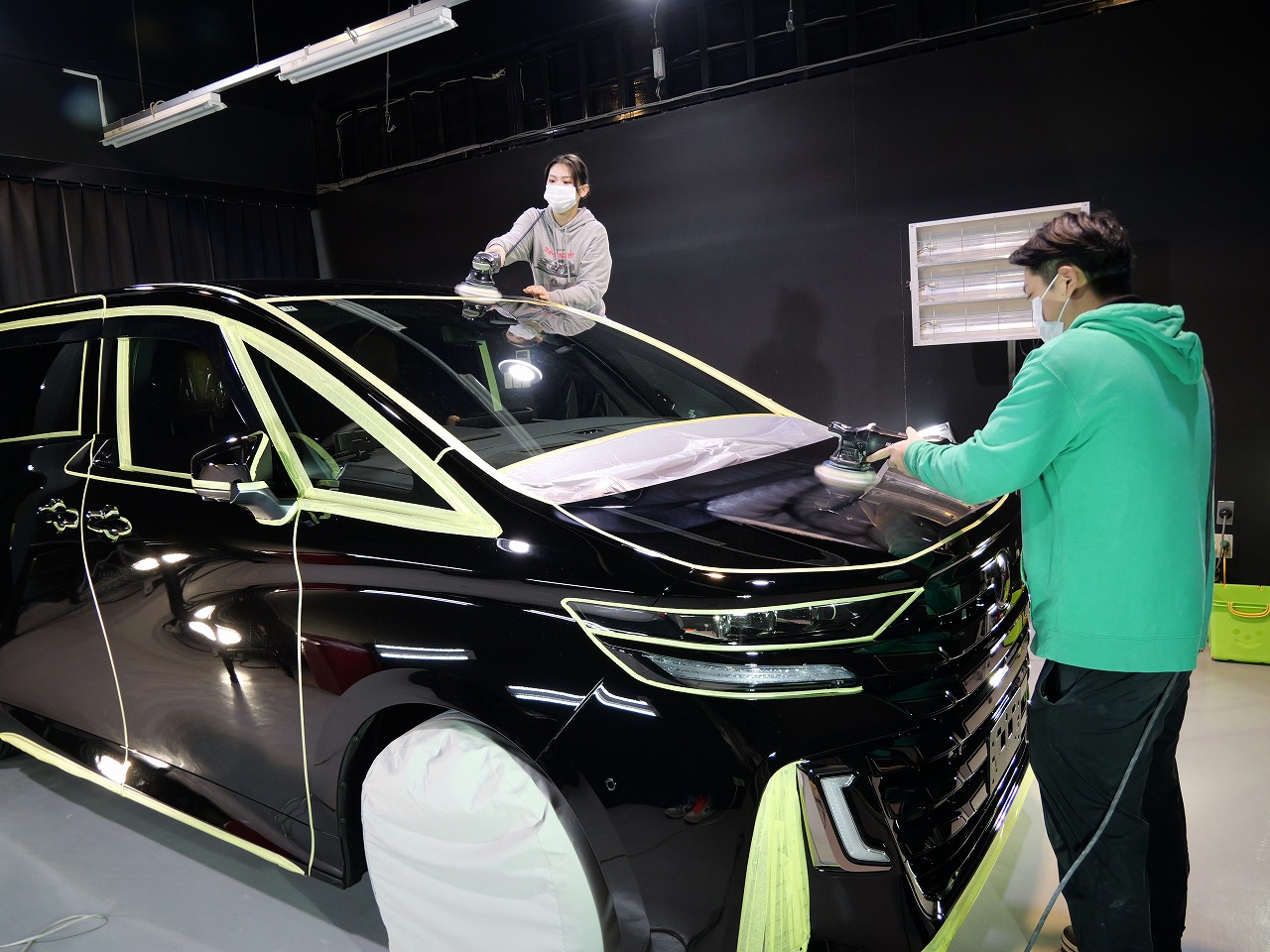 施工はボディにはファインラボセラミックコーティングウルトラ2層/ホイールセラミック/フロント