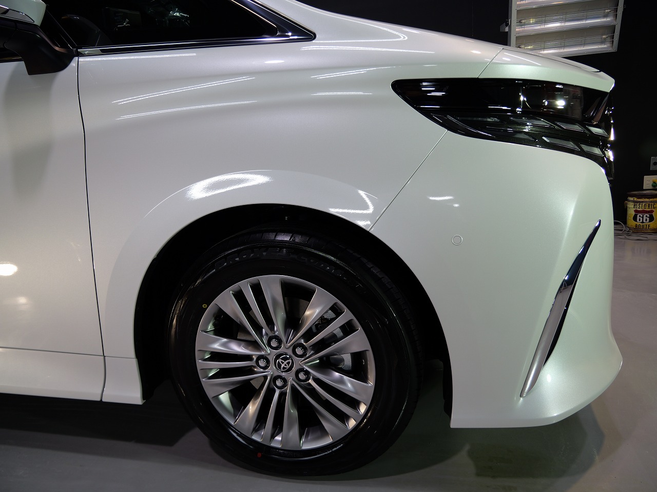 ボディカラーはプラチナホワイトパール。施工はボディにはファインラボセラミックコーティング