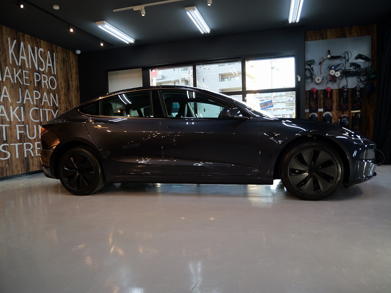 大阪府四条畷市より当店のリピーター様がテスラ モデル3をお持ち下さいました!ボディカラーは