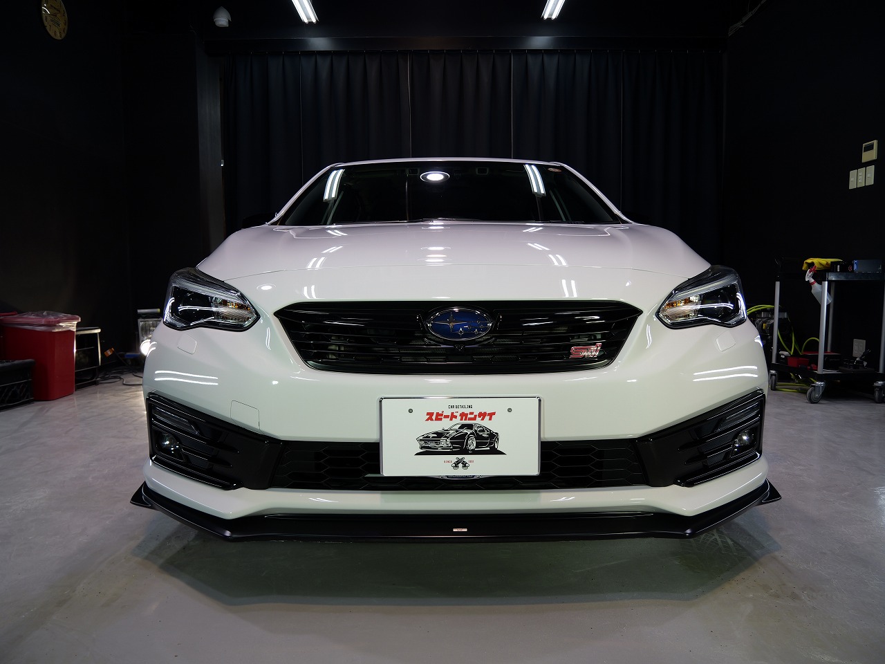 大阪府東大阪市よりスバルインプレッサSTIのご入庫です!ボディカラーはセラミックホワイト。