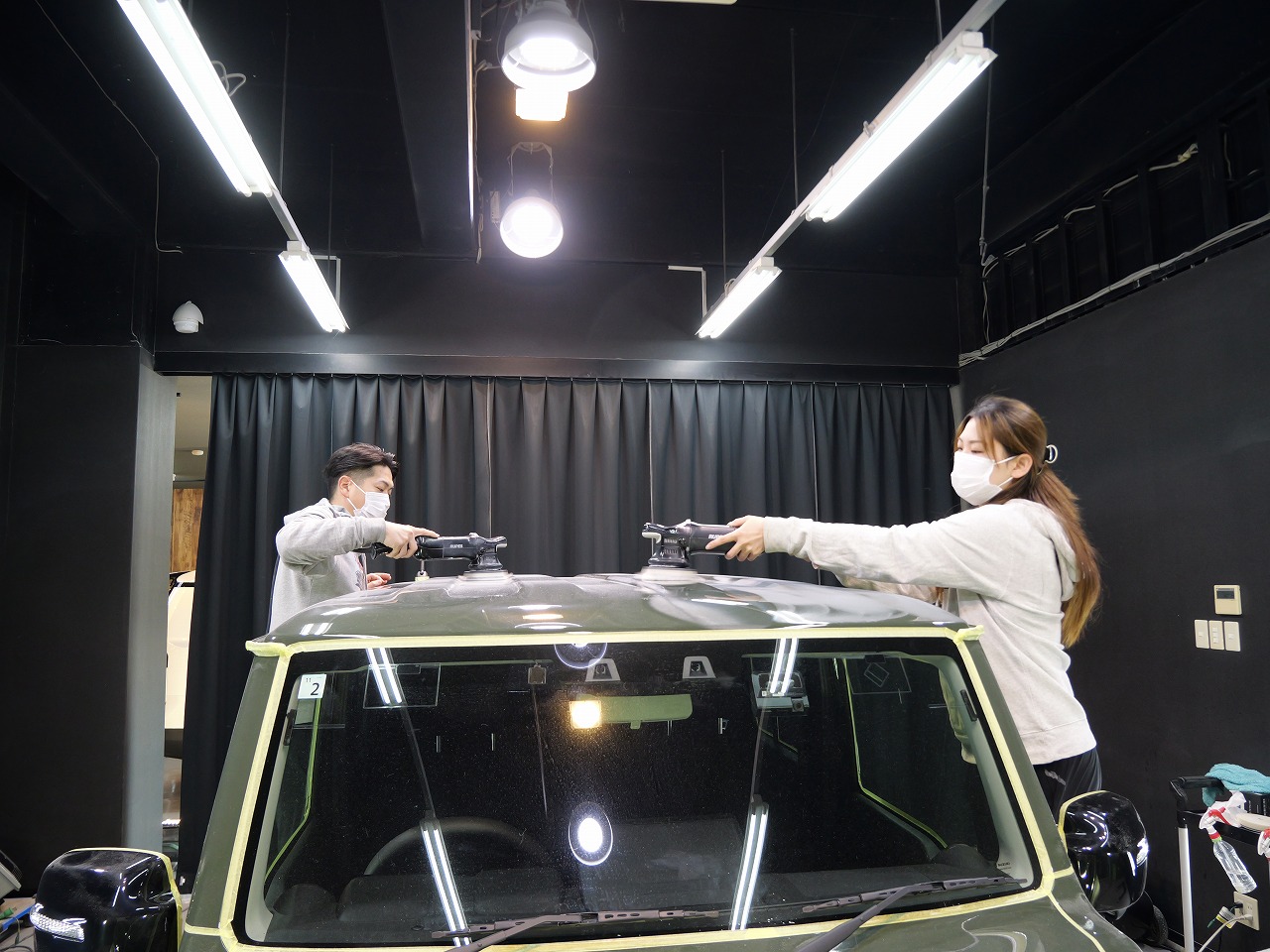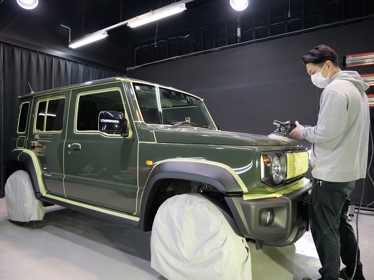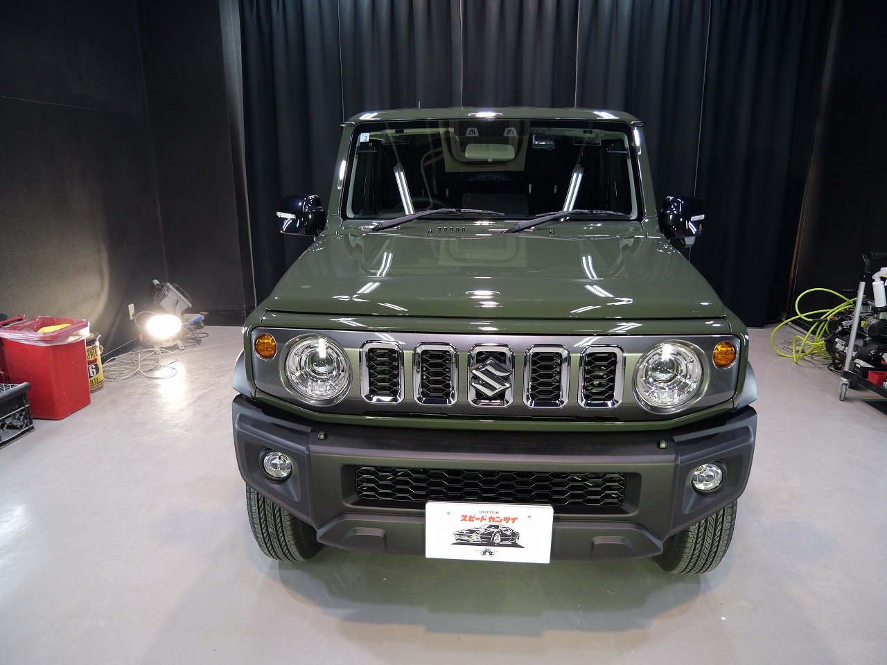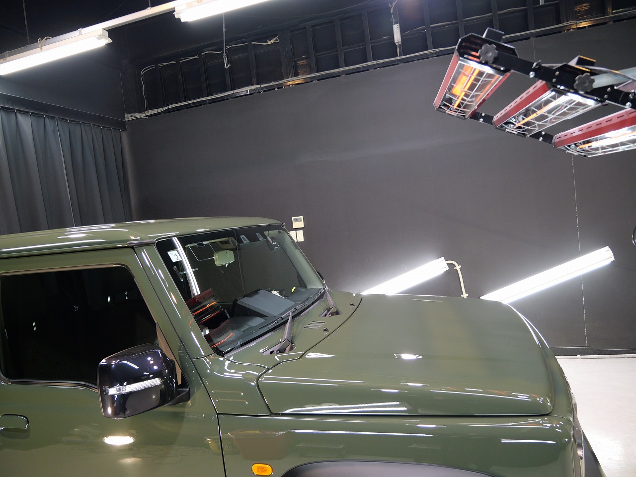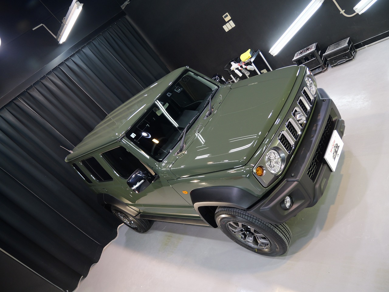 ジャングルグリーン。施工はボディにはファインラボセラミックコーティングウルトラ/ホイールセラミ