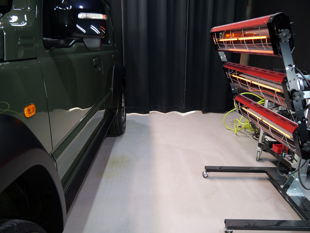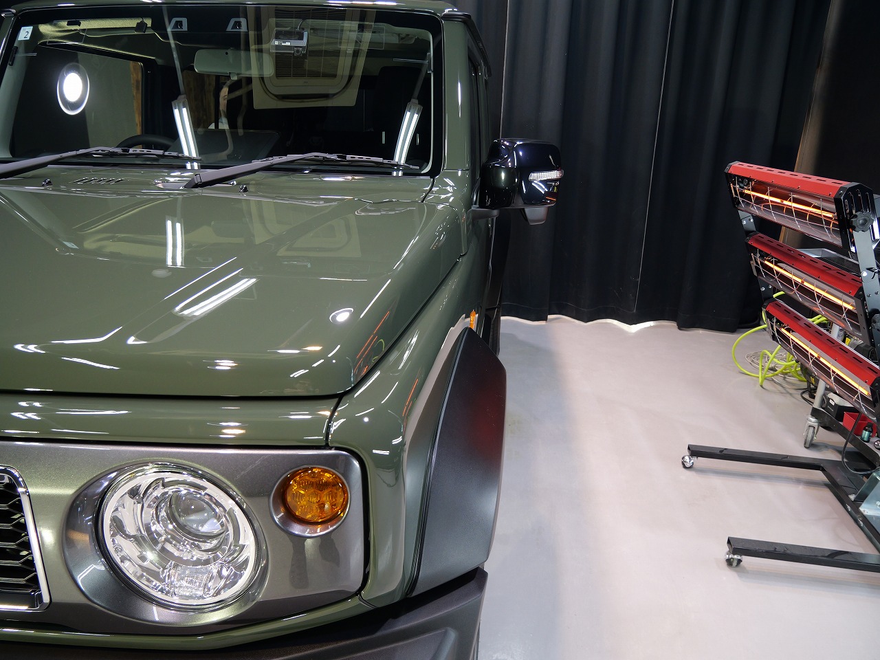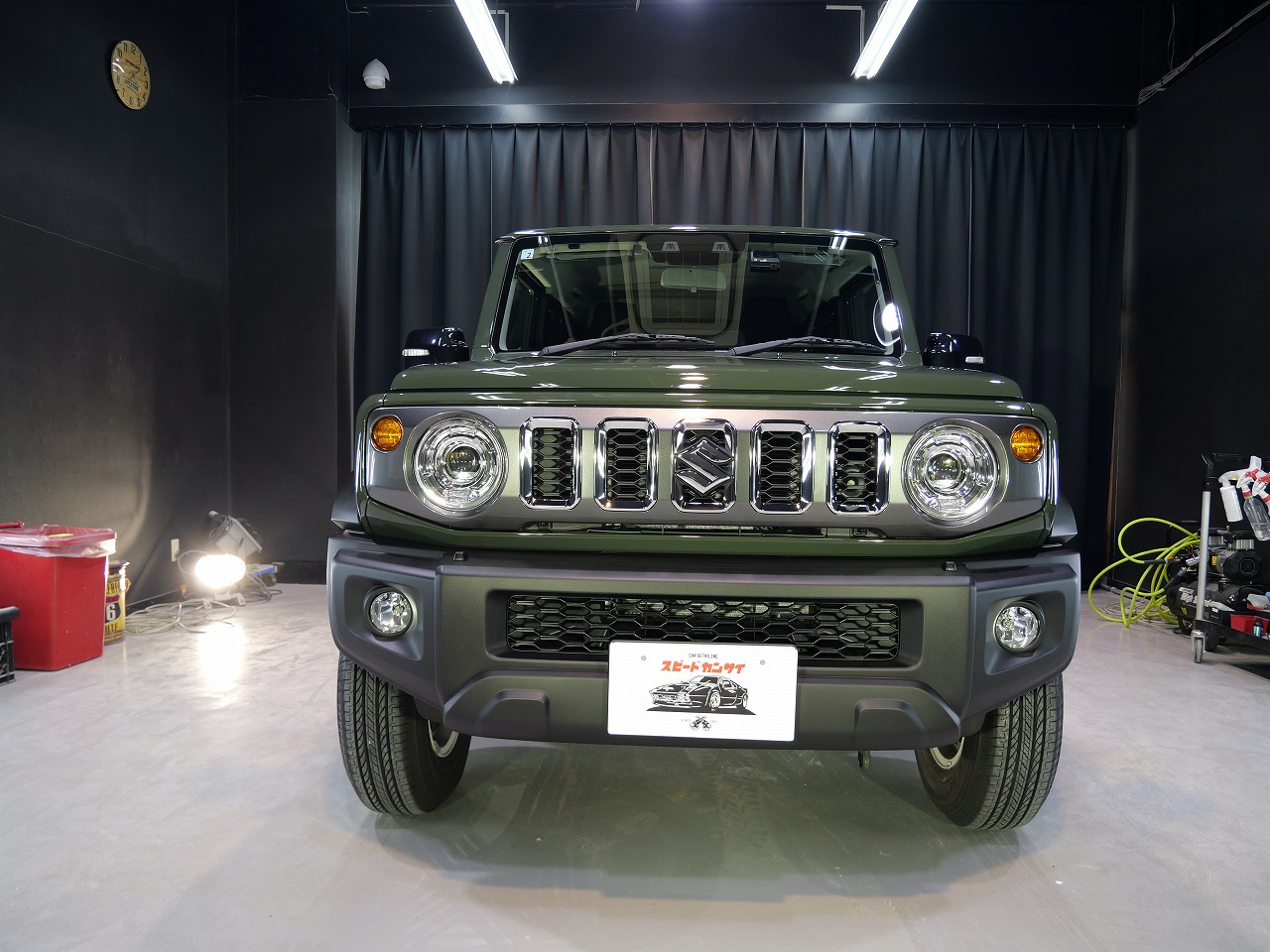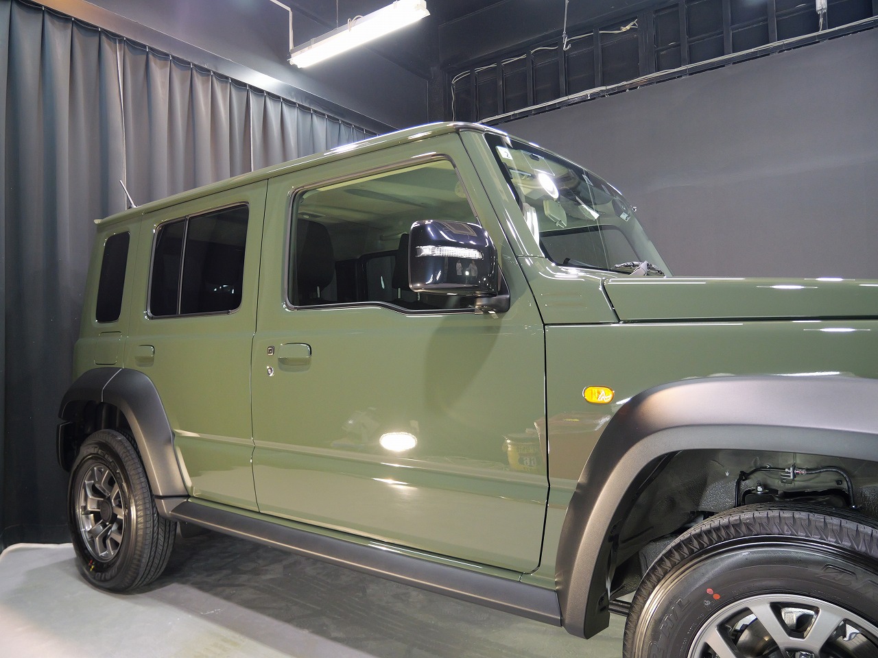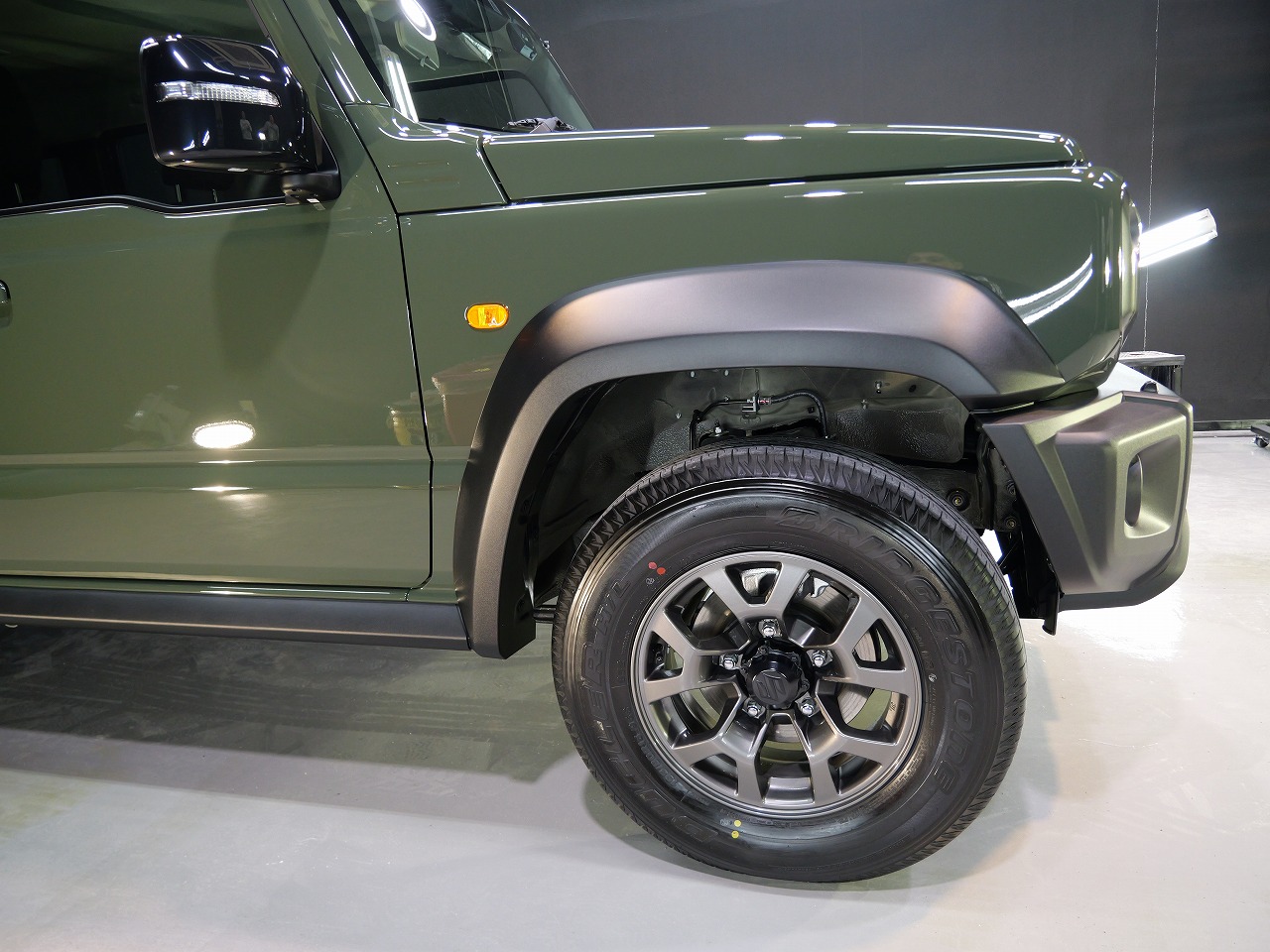 ジャングルグリーン。施工はボディにはファインラボセラミックコーティングウルトラ/ホイールセラミ
